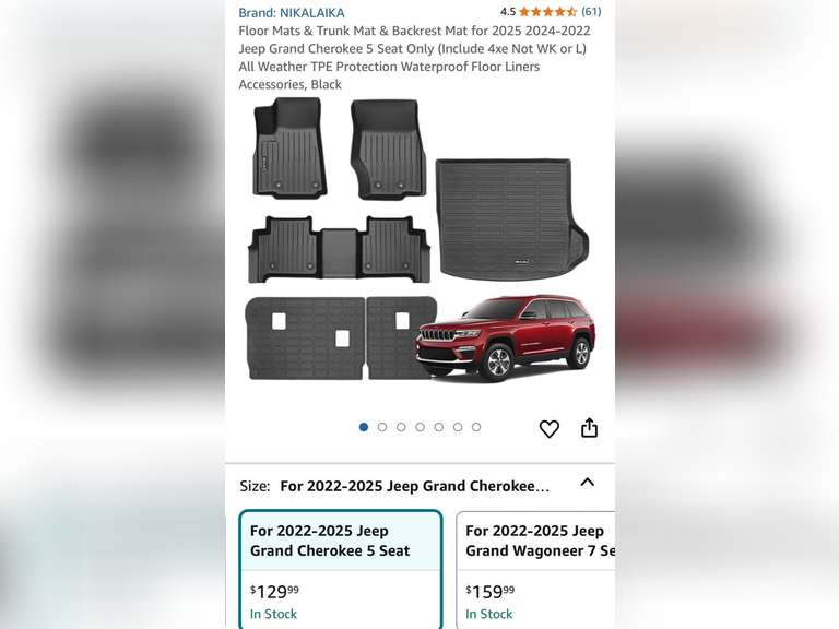 LOT 42 - 60: All-Weather TPE Floor Mats, Trunk Mat & Backrest Mat for Jeep Grand Cherokee 2022-2024