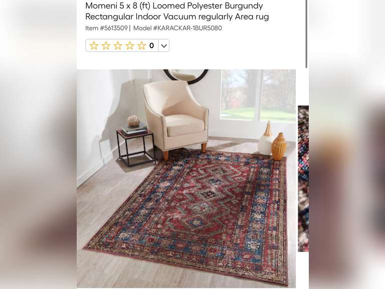 LOT 21 - Momeni 5 x 8 (ft) Loomed Polyester Burgundy Rectangular