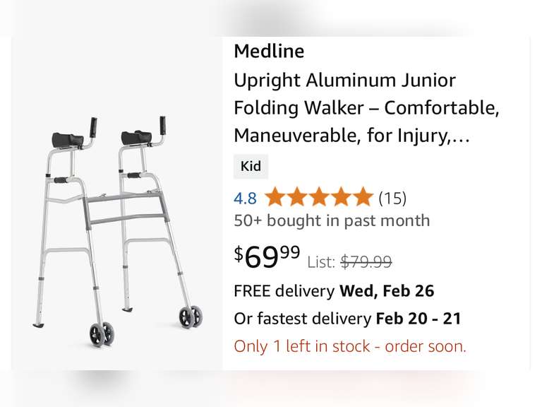 LOT 9 - Medline Upright Aluminum Junior Folding Walke