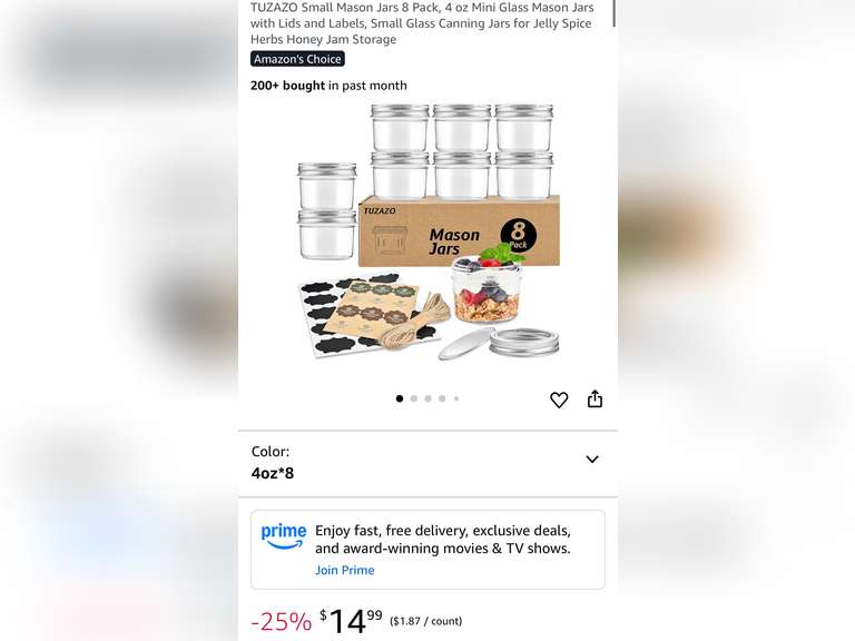 LOT 1356 - TUZAZO Small Mason Jars 8 Pack