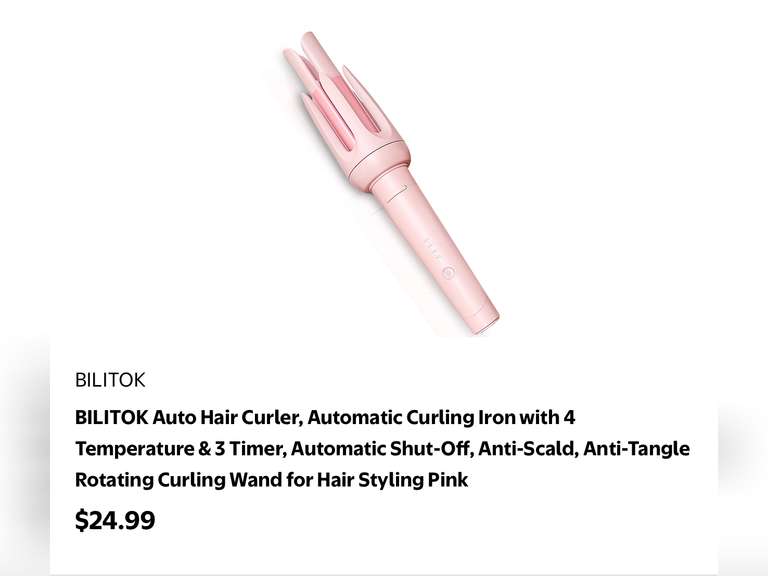 LOT 1357 - BILITOK Auto Hair Curler, Automatic Curling Iron, Anti-Tangle Rotating Curling Wand, Pink