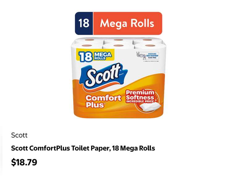 LOT 1397 - Scott ComfortPlus Toilet Paper, 18 Mega Rolls