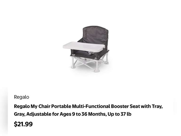 LOT 1407 - Regalo My Chair Portable Multi-Functional Booster Seat with Tray, Gray, Adjustable for Ages 9 to 36