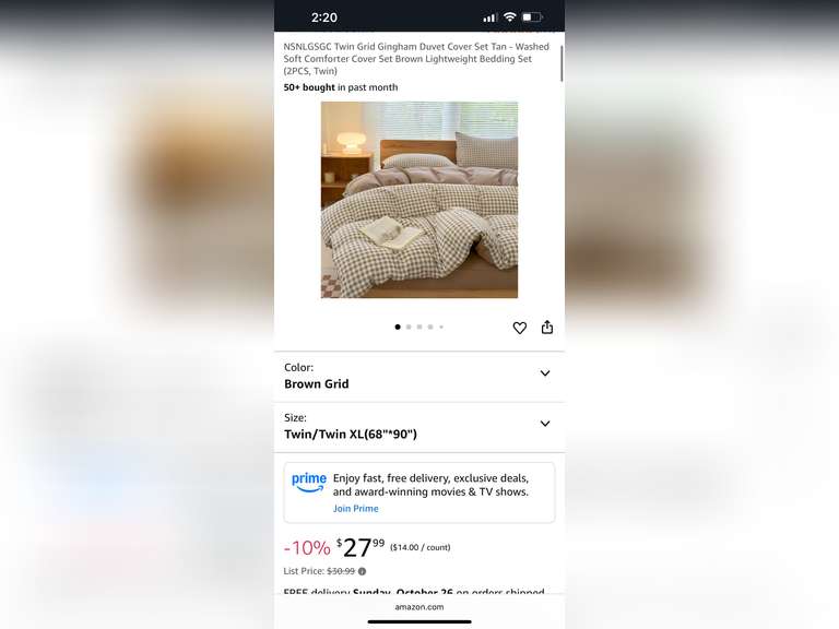 LOT 1419 - NSNLGSGC Twin Grid Gingham Duvet Cover Set Tan