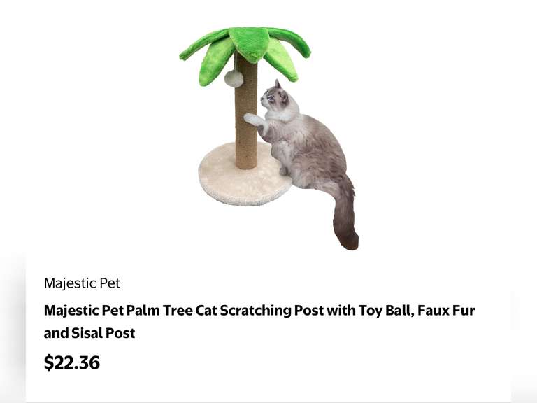 LOT 1469 - Majestic Pet Palm Tree Cat Scratching Post with Toy Ball, Extra Scratch Rolls