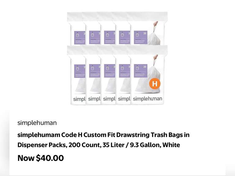 LOT 1477 - simplehumam Code H Custom Fit Drawstring Trash Bags in Dispenser Packs, 200 Count, 35 Liter / 9.3 Ga