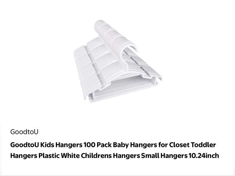 LOT 1480 - GoodtoU Kids Hangers 100 Pack Baby Hangers, Plastic Mixed Color Small Hangers 10.24inch