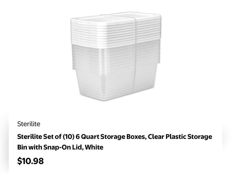 LOT 1503 - Sterilite Set of (10) 6 Quart Storage Boxes, Clear Plastic Storage Bin with Snap-On Lid, White ( Set