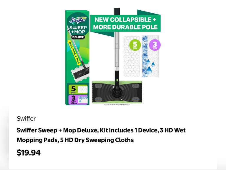 LOT 1515 - Swiffer Sweep + Mop Deluxe, Kit Includes 1 Device, 3 HD Wet Mopping Pads, 5 HD Dry Sweeping Cloths