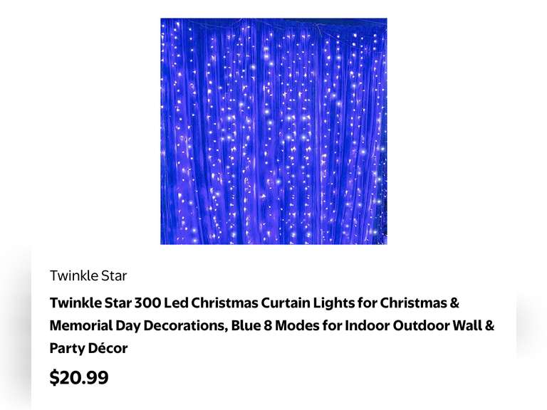 LOT 1526 - Twinkle Star 300 Led Christmas Curtain Lights for Christmas & Memorial Day Decorations (2 Pack )