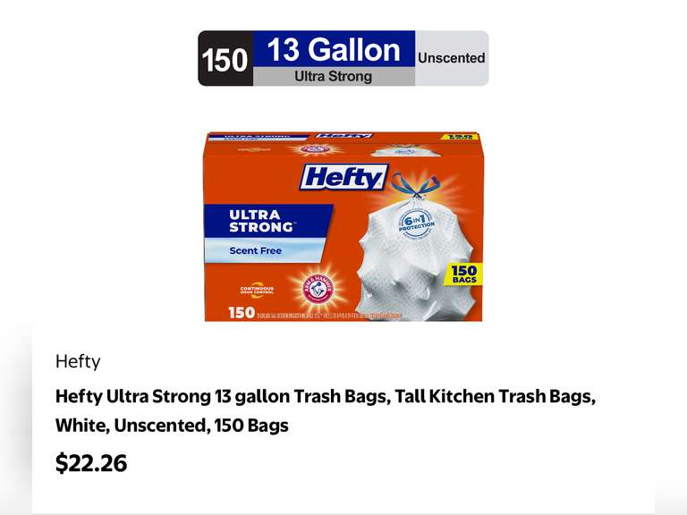 LOT 1527 - Hefty Ultra Strong 13 gallon Trash Bags, Tall Kitchen Trash Bags, White, Unscented, 150 Bags