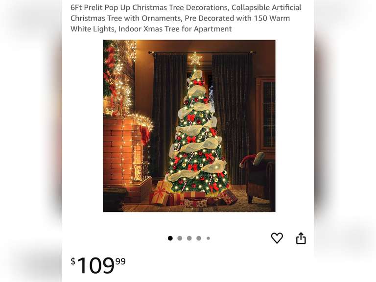 6Ft Prelit Pop Up Christmas Tree Decorations, Collapsible Artificial Christmas Tree with Ornaments, Pre Decorated with 150 Warm White Lights, Indoor Xmas Tree.
