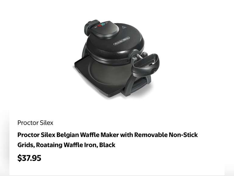 LOT 1395 - Proctor Silex Belgian Waffle Maker with Removable Non-Stick Grids, Roataing Waffle Iron, Black