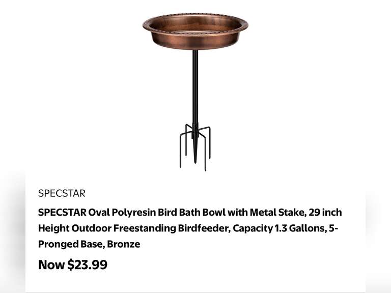 LOT 1348 - SPECSTAR Oval Polyresin Bird Bath Bowl with Metal Stake, 29 inch Height , Bronze