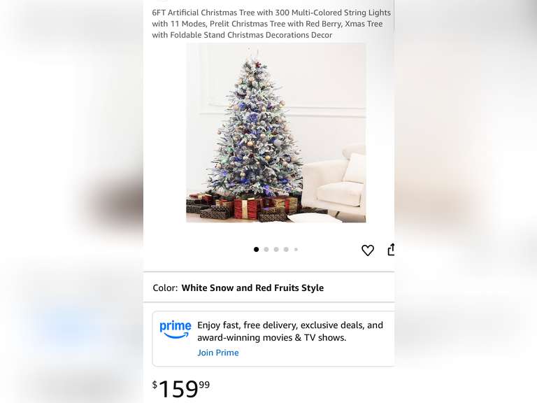 LOT 756 - 6FT Artificial Prelit Christmas Tree with Red Berry
