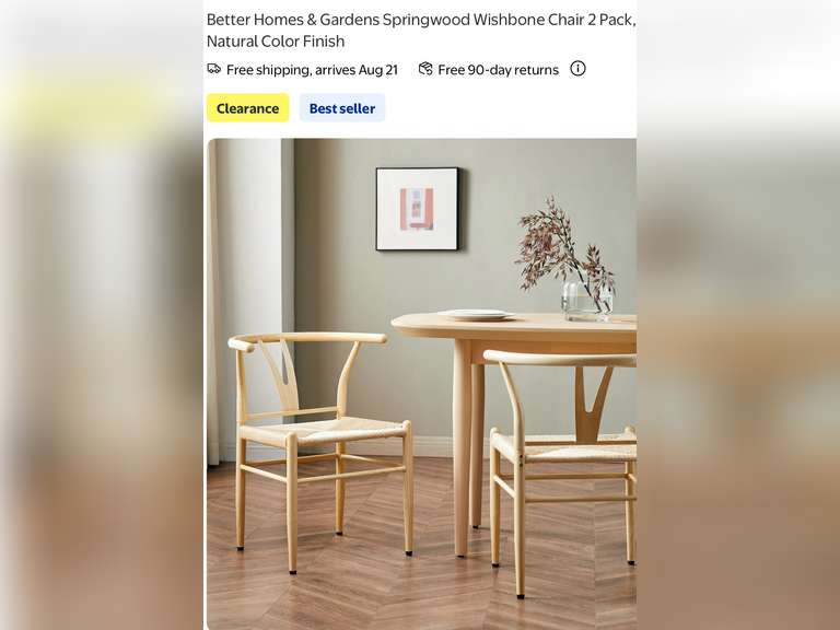 LOT 1001 - Better Homes & Gardens Springwood Wishbone Chair 2 Pack, Light Natural Color Finish