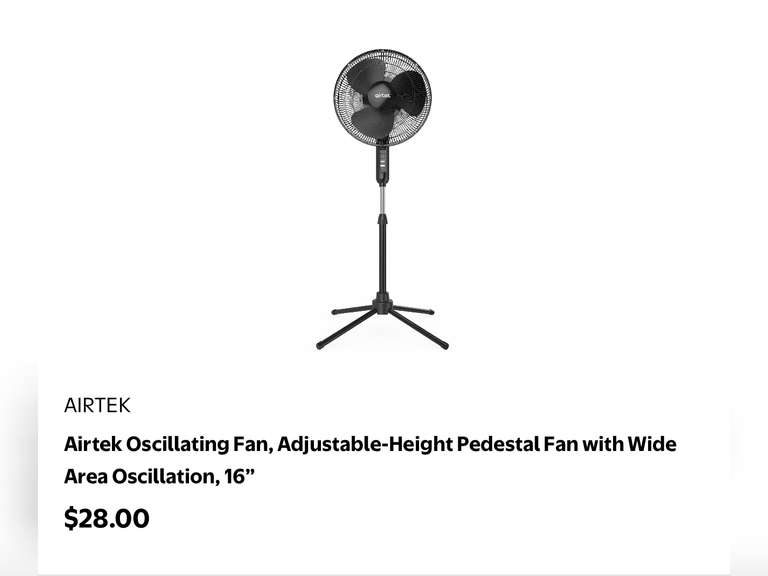 LOT 1514 - Airtek Oscillating Fan, Adjustable-Height Pedestal Fan with Wide Area Oscillation, 16”